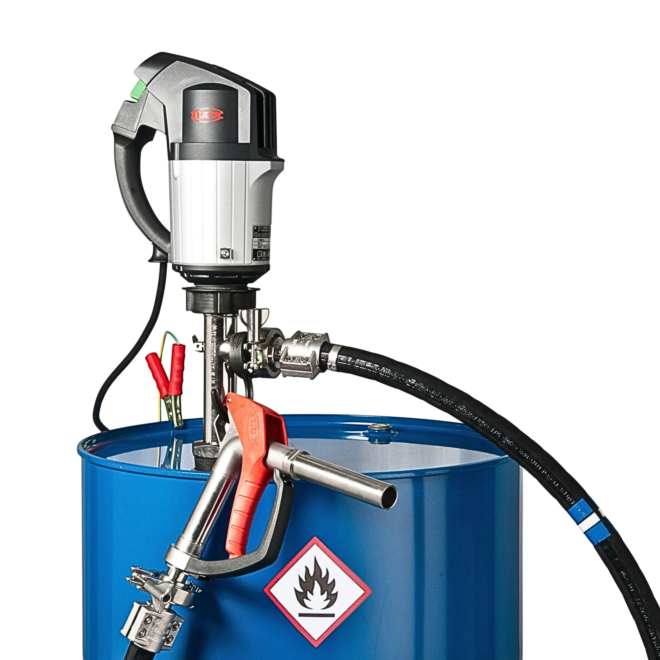 Firstly, the Flux F 460 Ex motor is the clear choice for professionals pumping from drums and IBC’s in explosion-risk zones, where intrinsically safe, certified equipment is non-negotiable. Furthermore, this explosion proof drum pump motor offers the ideal balance of performance, weight, safety and adaptability, supporting a wide range of hazardous fluid handling tasks.