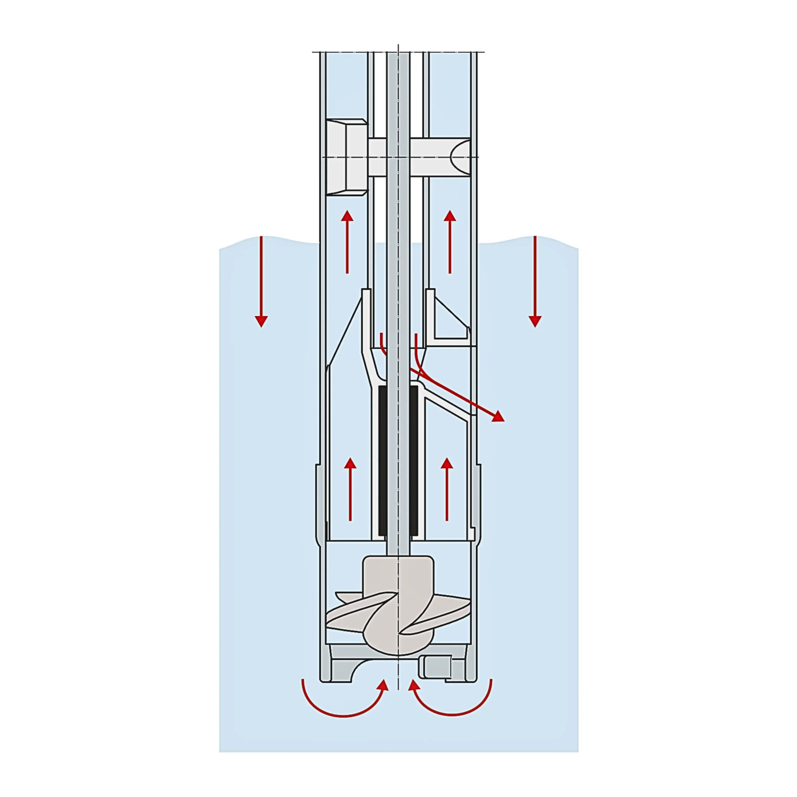 When the drive motor is activated, the impeller generates centrifugal force, propelling the liquid axially, parallel to the driveshaft and thus upwards, to the side discharge outlet. The motor drives the impeller at speeds up to 10,000 RPM.